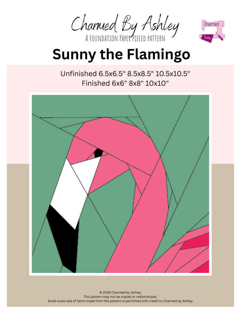 I’m so excited (and a little nervous!) to finally share Sunny the Flamingo, my very first foundation paper piecing (FPP) sewing pattern. This little flamingo has been living in my head (and on my sewing table) for a while now, and seeing her come together has been such a fun learning experience for me.